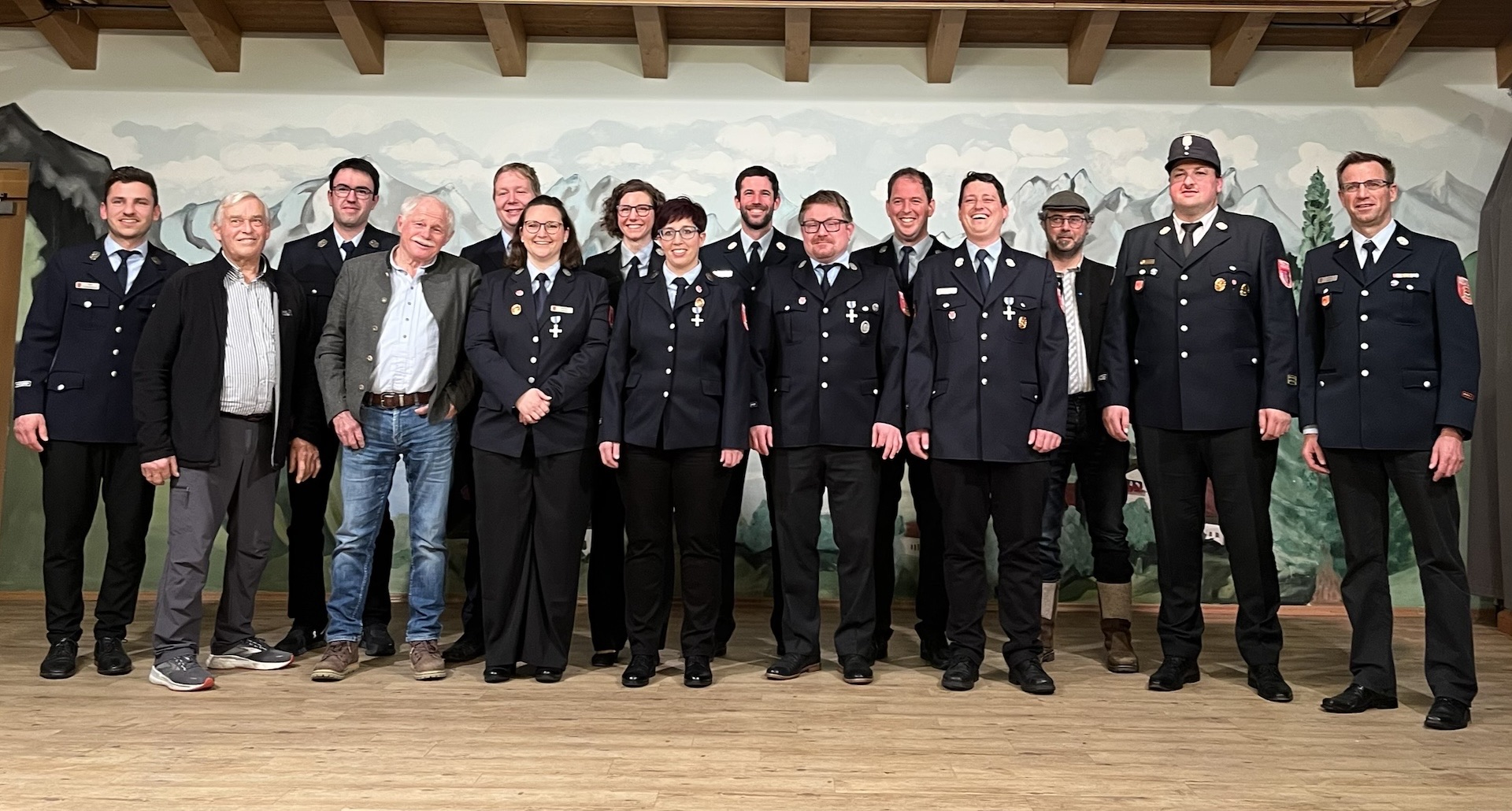 Bei den Ehrungen wurden Tobias Riedel, Stefan Tarrach und Martin Thomas für 10 Jahre aktive Mitgliedschaft geehrt. Sarah Fichtl wurde für 20 Jahre aktive Mitgliedschaft ausgezeichnet. Für 60 Jahre passive Mitgliedschaft wurden Buhl Josef, Möslang Herbert und Oßwald Herman geehrt. Staatliche Ehrungen durch Inspektor Michael Krumbacher erhielten Christina Biker, Florian Brandl, Andreas Möslang, Markus Müller, Michael Nutz, Max Steiger und Martina Tarrach für 25 Jahre aktiven Dienst.